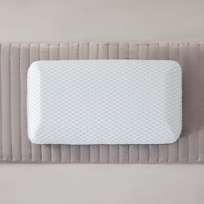 The memory foam Bamboo Charcoal Pillow offers pressure-relieving support for back and side sleepers. The hypoallergenic bamboo charcoal infusion removes moisture and odors to maintain a fresh sleep environment, and the ventilated design helps increase airflow. One side of the pillow is coated with active cooling technology that moves heat away from the body, and the same side has a comfortable cover with an instant cooling sensation. This pillow also comes in a shoulder cutout option that helps align the neck and spine for side sleepers.
