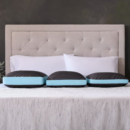 The Ice Cloud™ Pillow offers four different cooling technologies for unparalleled comfort. On one side, the CoolSync™ memory foam is infused with cooling gel and features breathable ventilation channels, ensuring a cool and comfortable surface. This side also incorporates a layer of OmniPhase™ phase change material, which absorbs and dissipates heat for continuous temperature regulation. Flip the pillow over for a more traditional feel with shredded CoolSync™ memory foam and down alternative fill, providing a soft and supportive sleep surface. The pillow's innovative HyperChill™ cover is cool to the touch, adding another layer of cooling support. Available in low, mid, and high-loft options, this pillow is designed to accommodate all sleep styles.